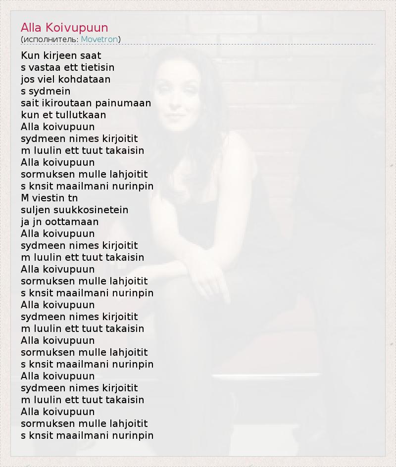 А как ты думаешь, о чем песня "Alla Koivupuun" ?