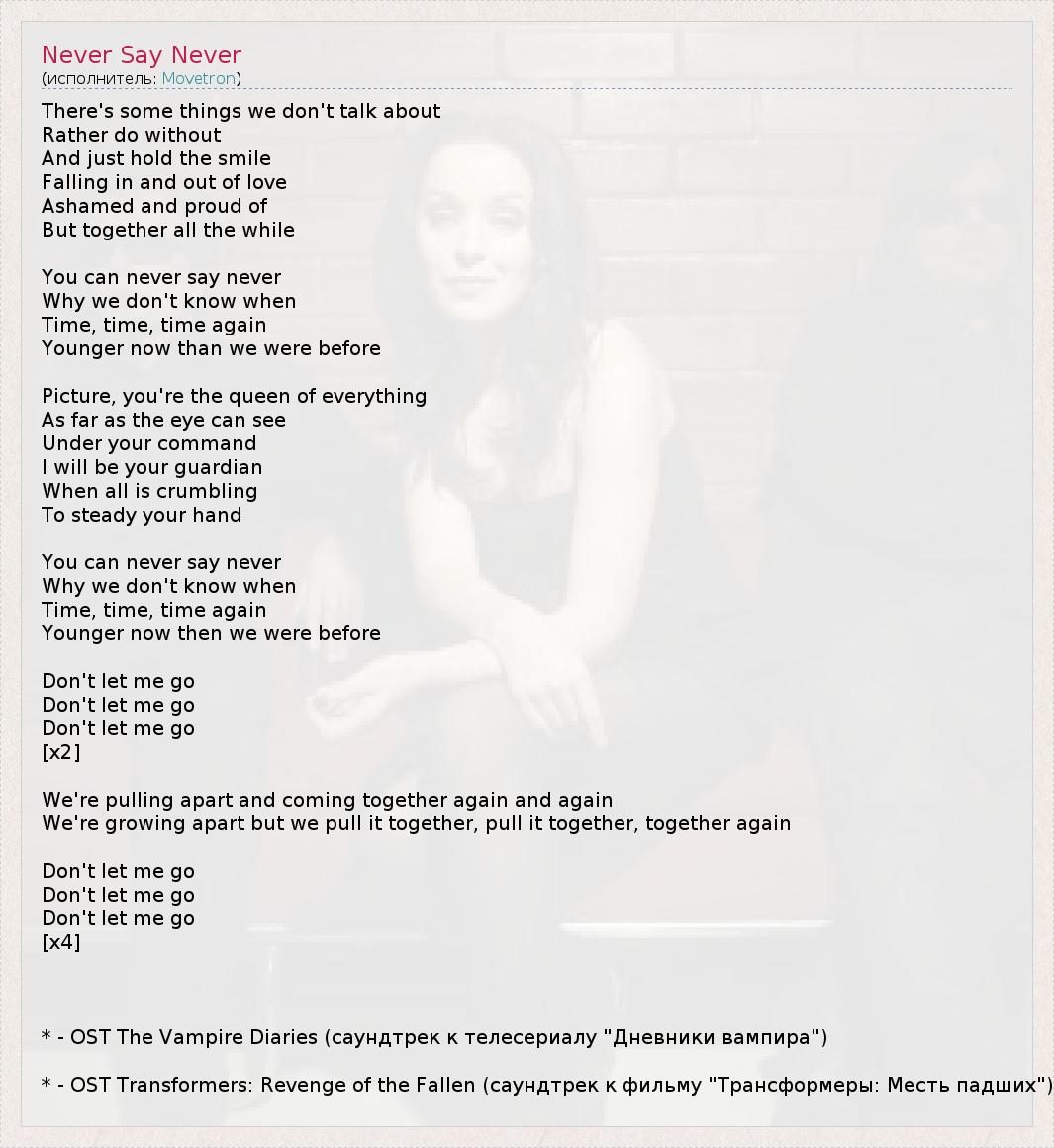 А как ты думаешь, о чем песня "Never Say Never" ?