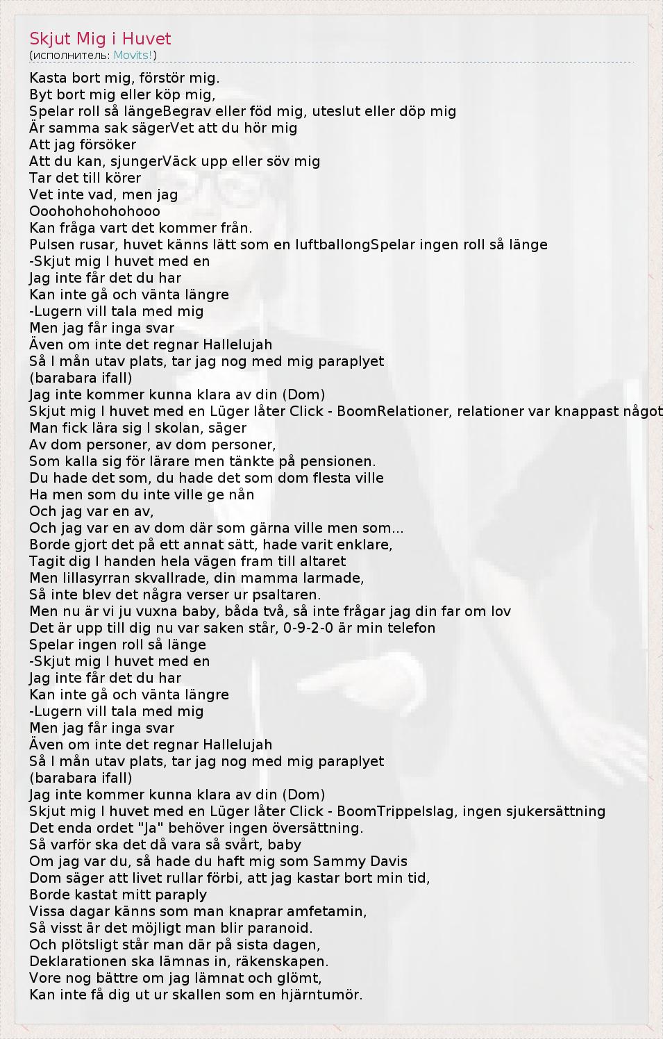 А как ты думаешь, о чем песня "Skjut Mig i Huvet" ?