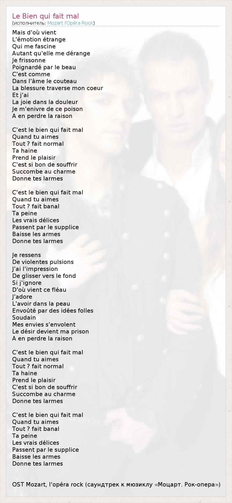 А как ты думаешь, о чем песня "Le Bien qui fait mal" ?