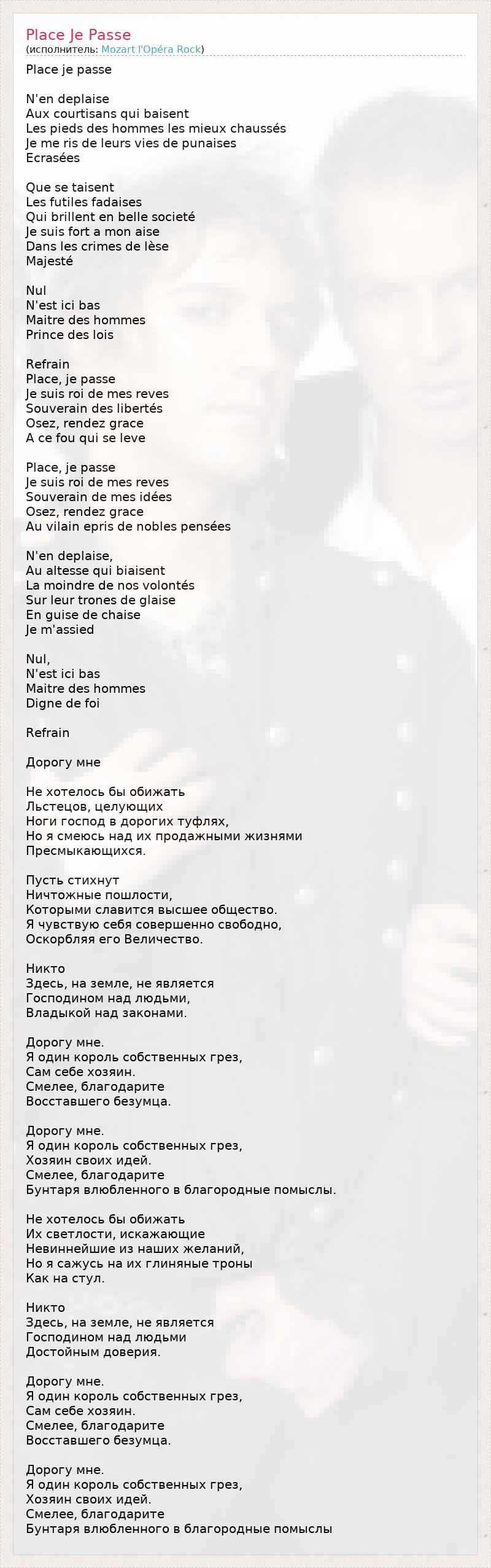 А как ты думаешь, о чем песня "Place Je Passe" ?