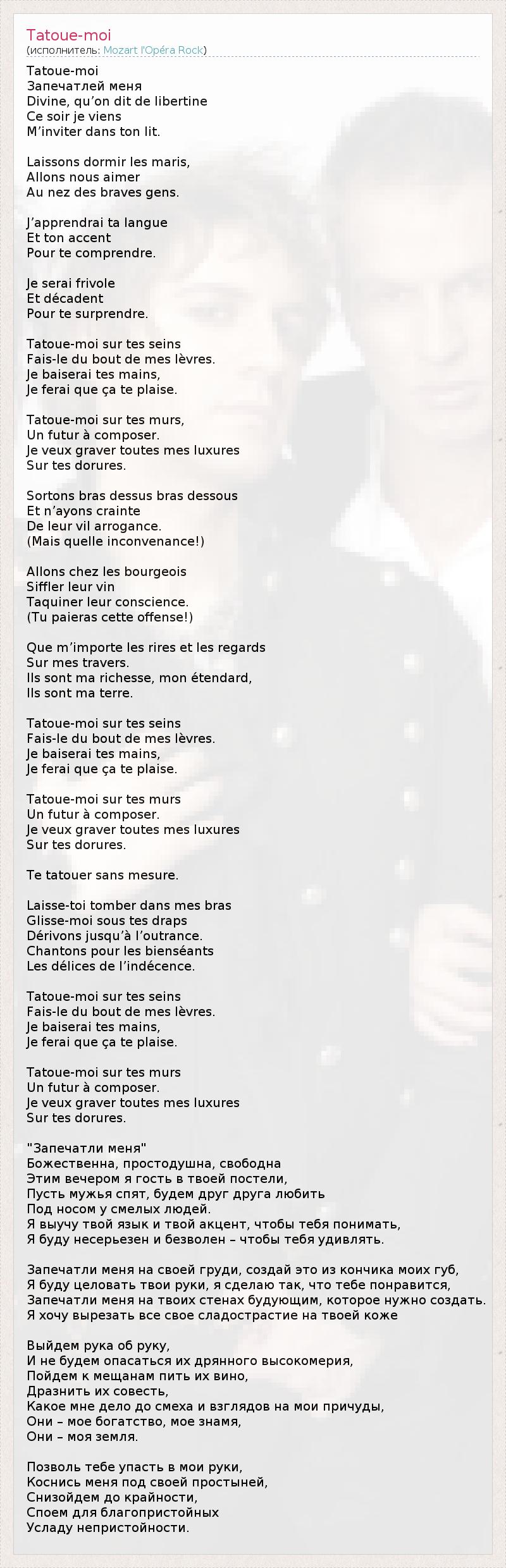 А как ты думаешь, о чем песня "Tatoue-moi" ?