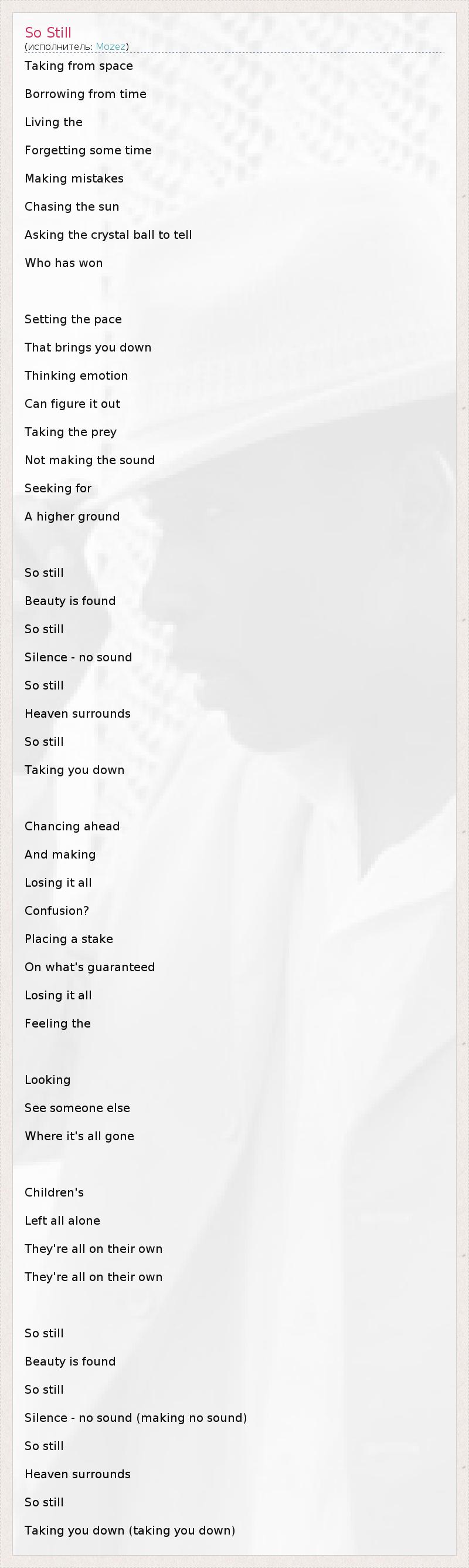 Это интересно:Осмонд Райт , более известный под своим сценическим псевдонимом Mozez , пожалуй, наиболее знаком публике как вокалист британской группы Zero 7 , хотя он работает соло с 2005 года.Mozez начал петь уже в раннем возрасте в его местном церковном хоре. Первый крупный успех пришел в 1996 году когда он выступал в дуэте под названием Spirits. Две песни Spirits попали в национальный чарт "Не Bring Me Down" и "Spirit... продолжение