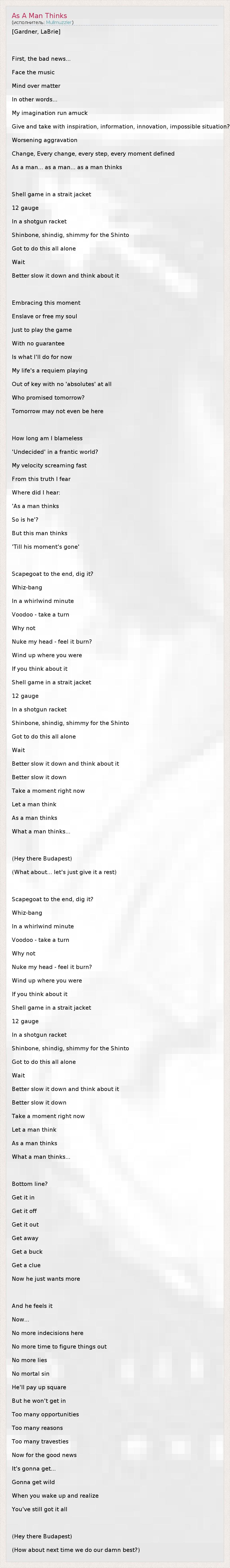 А как ты думаешь, о чем песня "As A Man Thinks" ?