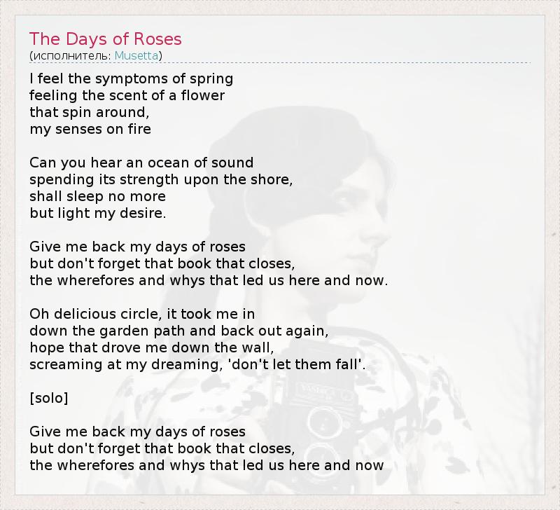 А как ты думаешь, о чем песня "The Days of Roses" ?