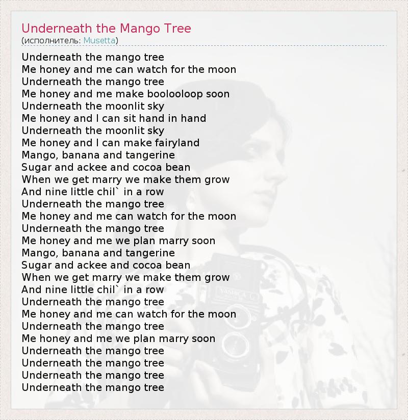 А как ты думаешь, о чем песня "Underneath the Mango Tree" ?