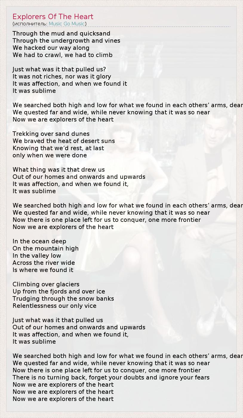 А как ты думаешь, о чем песня "Explorers Of The Heart" ?