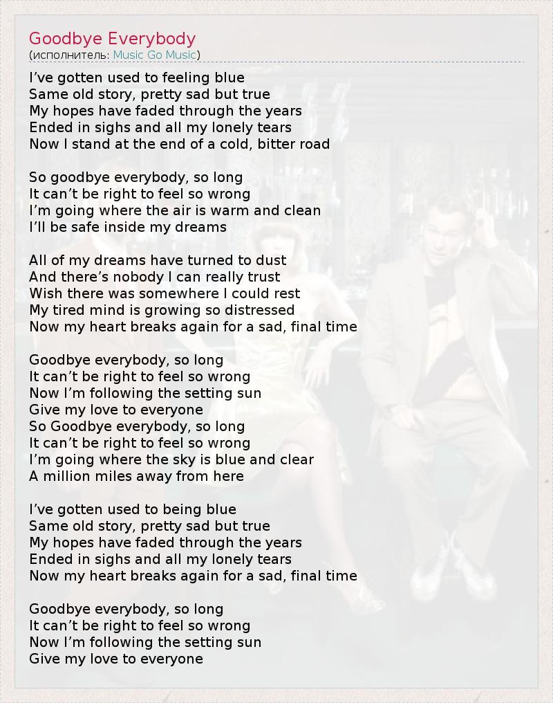 А как ты думаешь, о чем песня "Goodbye Everybody" ?