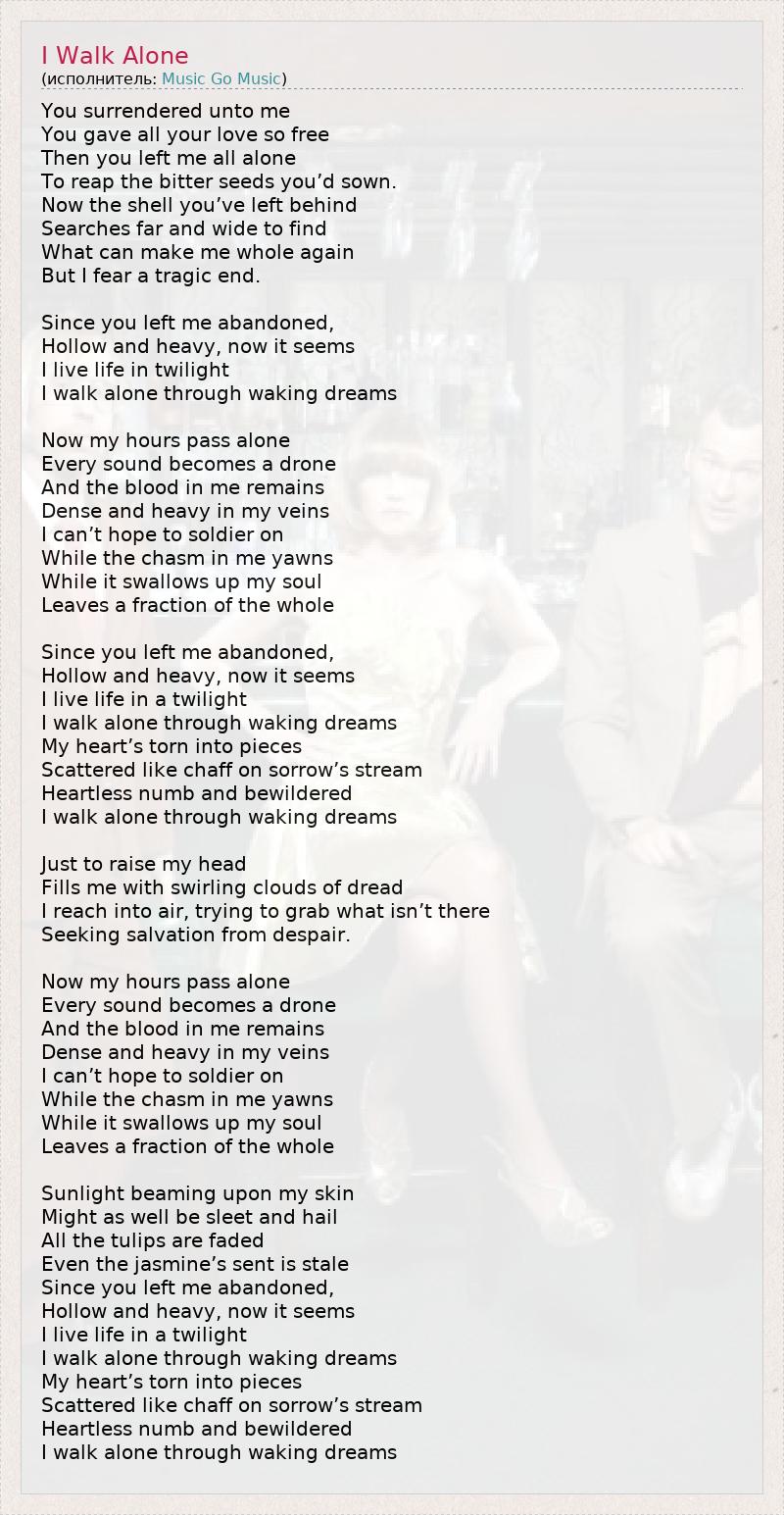 А как ты думаешь, о чем песня "I Walk Alone" ?