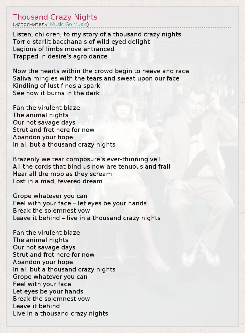 А как ты думаешь, о чем песня "Thousand Crazy Nights" ?