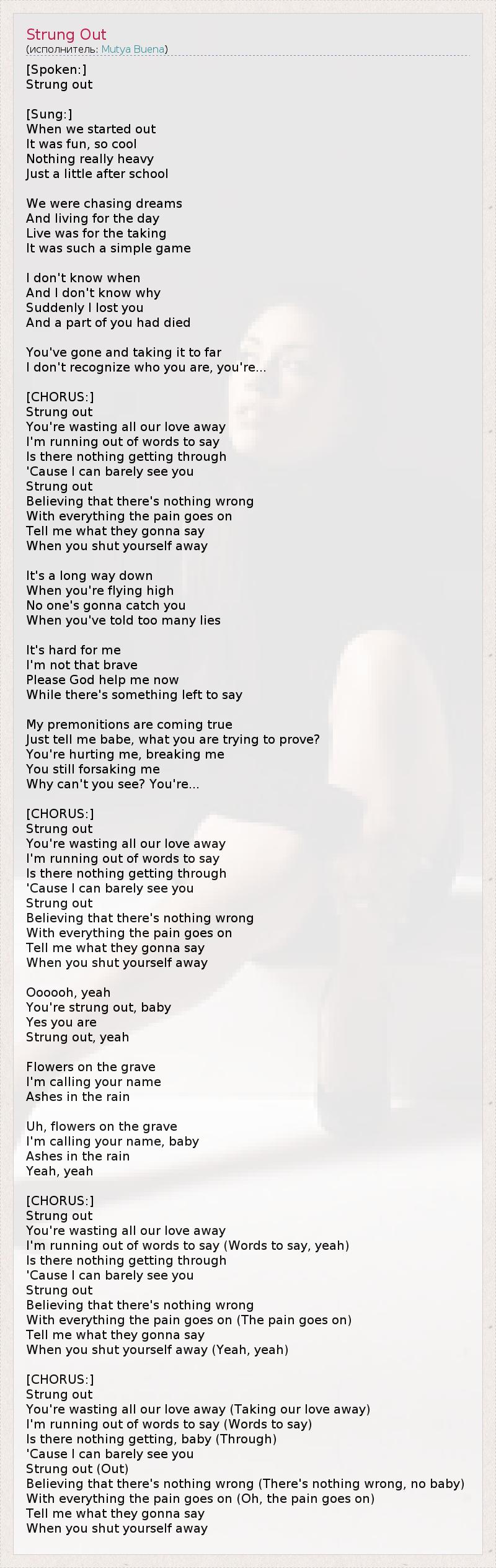 А как ты думаешь, о чем песня "Strung Out" ?
