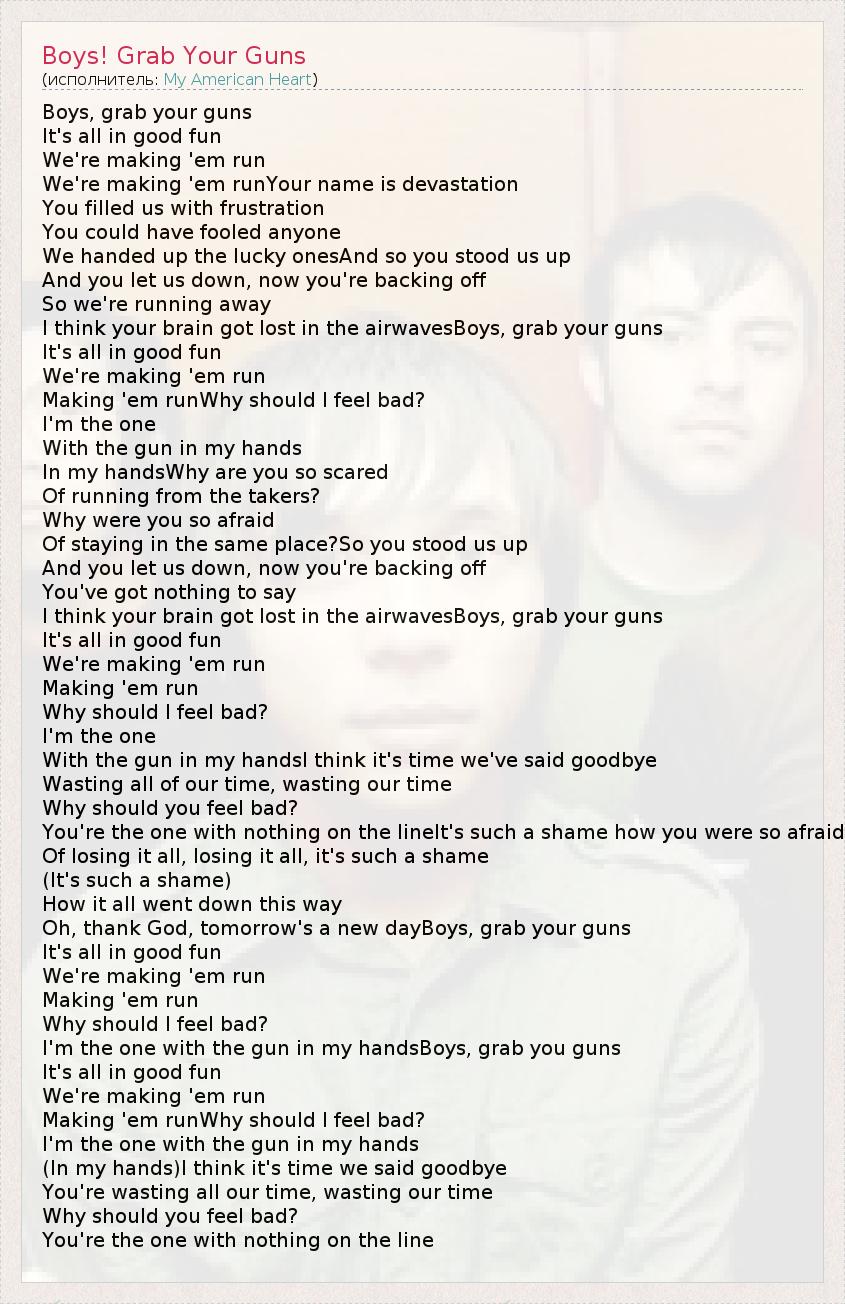 А как ты думаешь, о чем песня "Boys! Grab Your Guns" ?