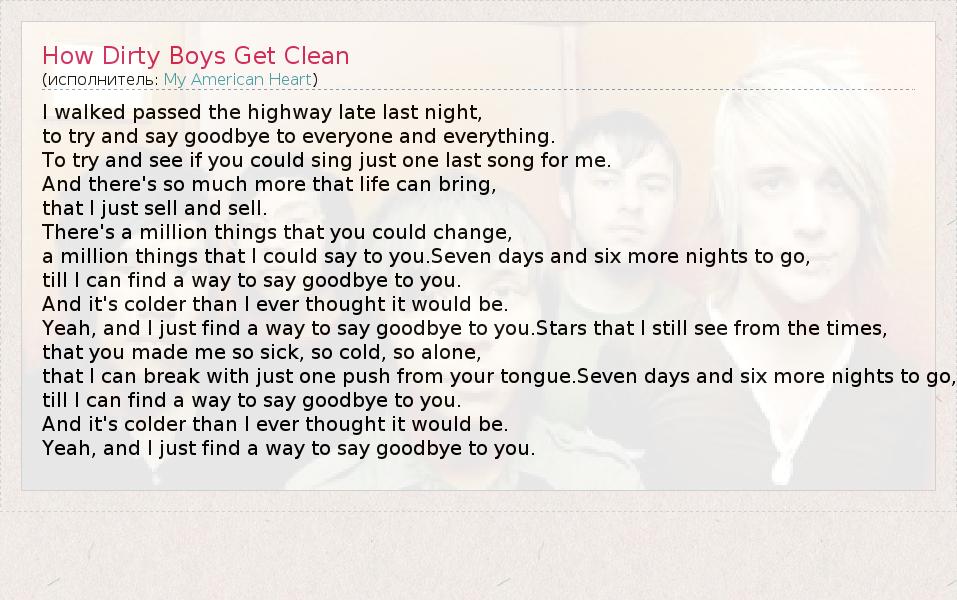 А как ты думаешь, о чем песня "How Dirty Boys Get Clean" ?