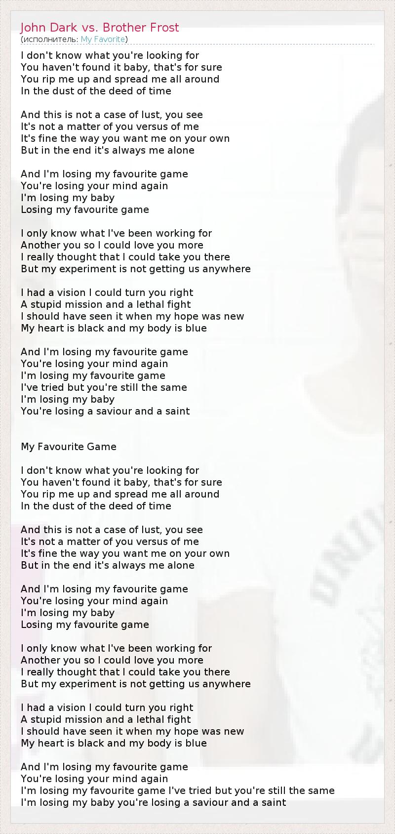 Моя любимая игра* (перевод Анастасия из Волгограда)