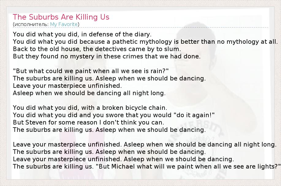 А как ты думаешь, о чем песня "The Suburbs Are Killing Us" ?