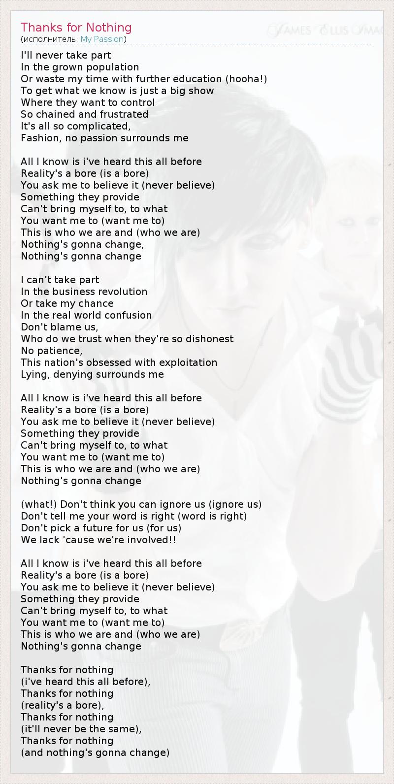 А как ты думаешь, о чем песня "Thanks for Nothing" ?