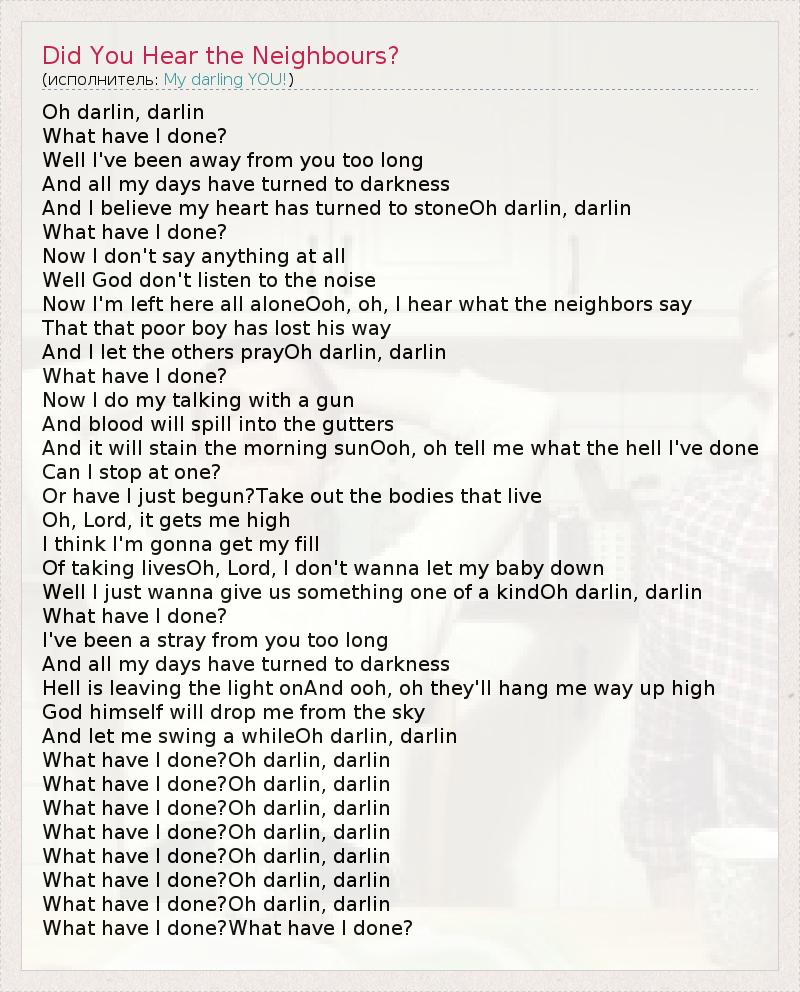 А как ты думаешь, о чем песня "Did You Hear the Neighbours?" ?