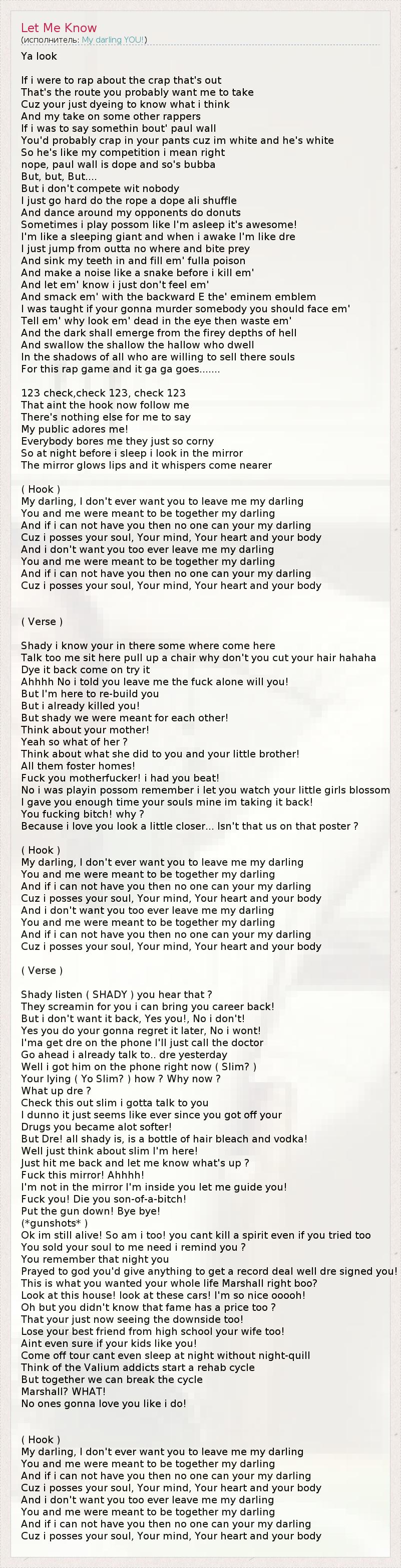 А как ты думаешь, о чем песня "Let Me Know" ?