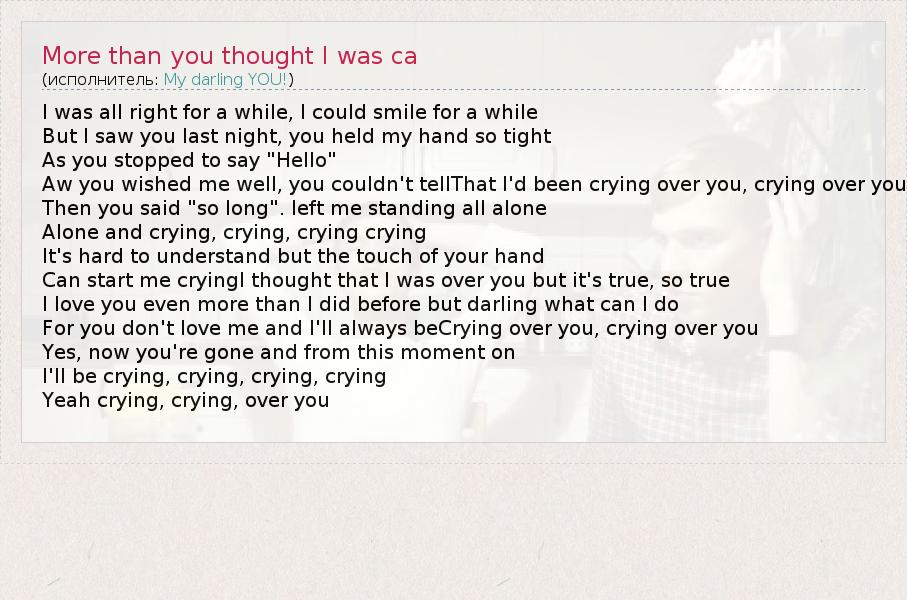 ГлавнаяИсполнителиMy darling YOU!More than you thought I was ca