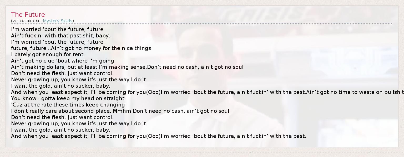 А как ты думаешь, о чем песня "The Future" ?
