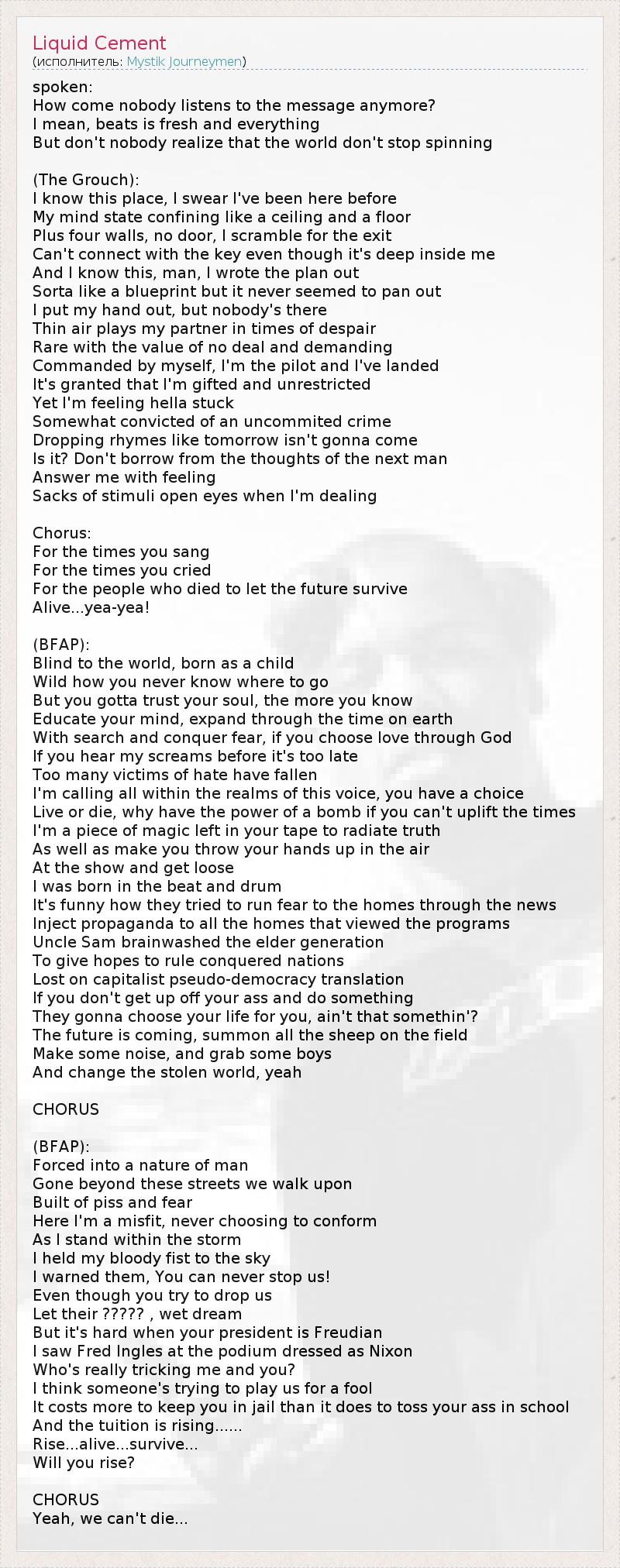 А как ты думаешь, о чем песня "Liquid Cement" ?