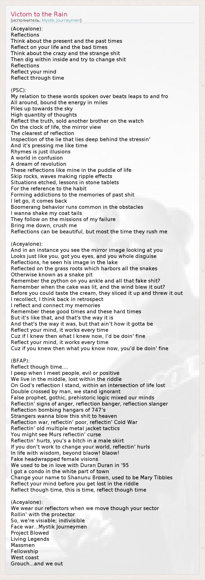 А как ты думаешь, о чем песня "Victom to the Rain" ?