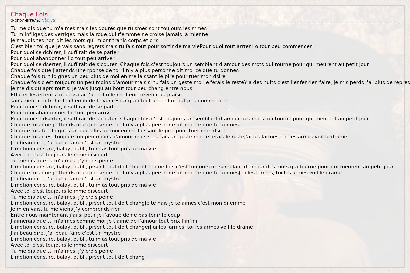А как ты думаешь, о чем песня "Chaque Fois" ?