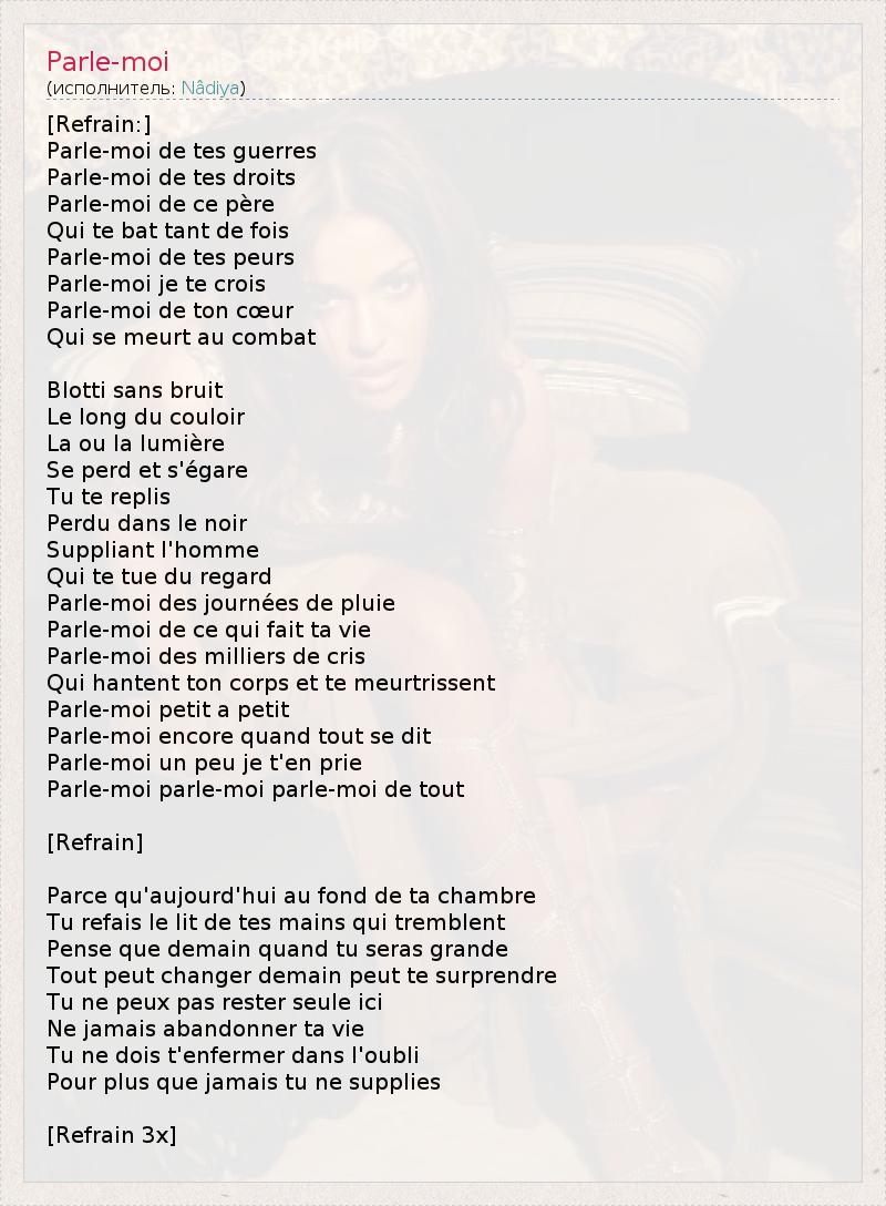 А как ты думаешь, о чем песня "Parle-moi" ?