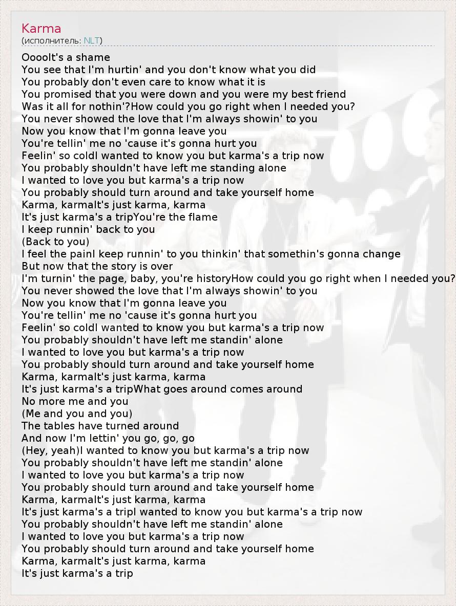 It's just karma's a tripI wanted to know you but karma's a trip now