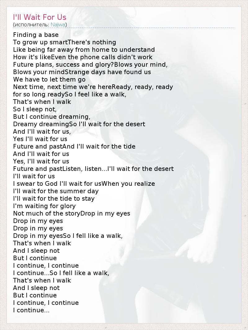 А как ты думаешь, о чем песня "I'll Wait For Us" ?