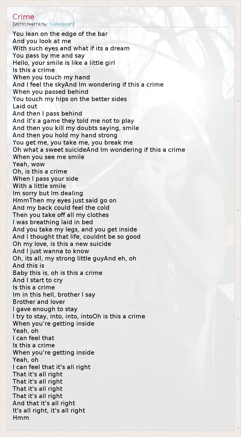 Oh what a sweet suicideAnd Im wondering if this a crime