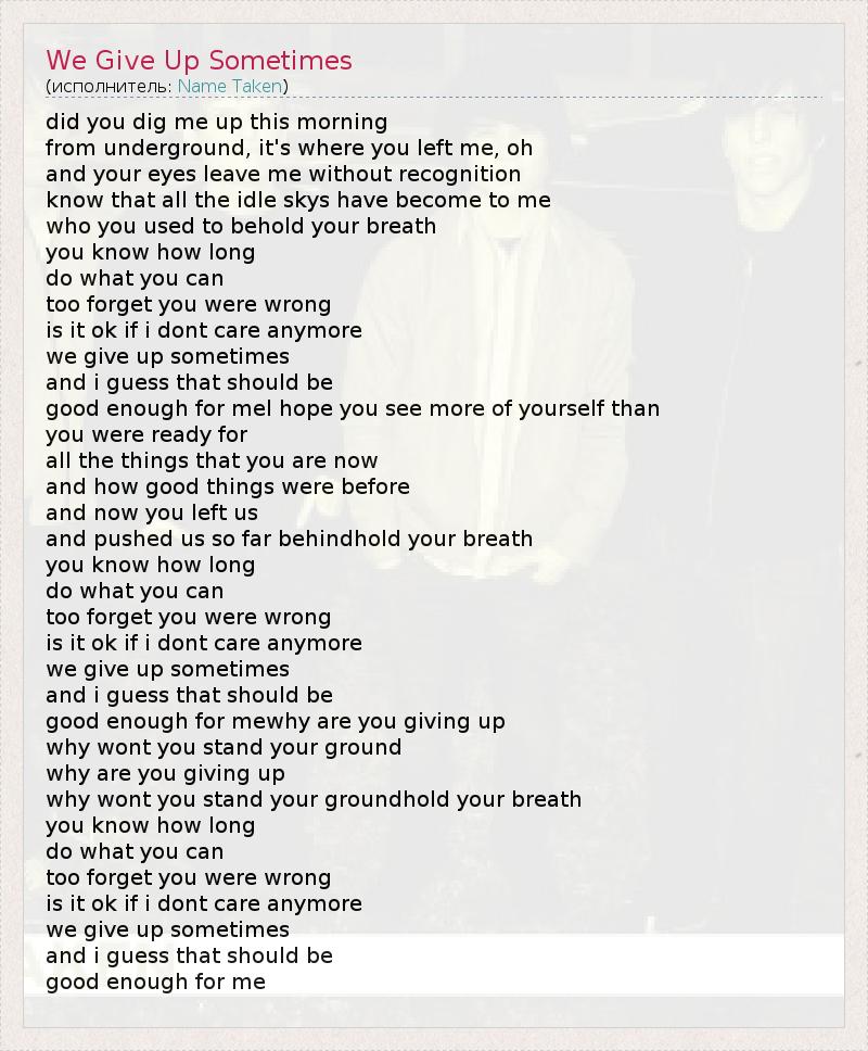 А как ты думаешь, о чем песня "We Give Up Sometimes" ?