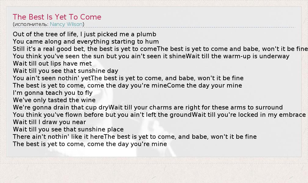ГлавнаяИсполнителиNancy WilsonThe Best Is Yet To Come