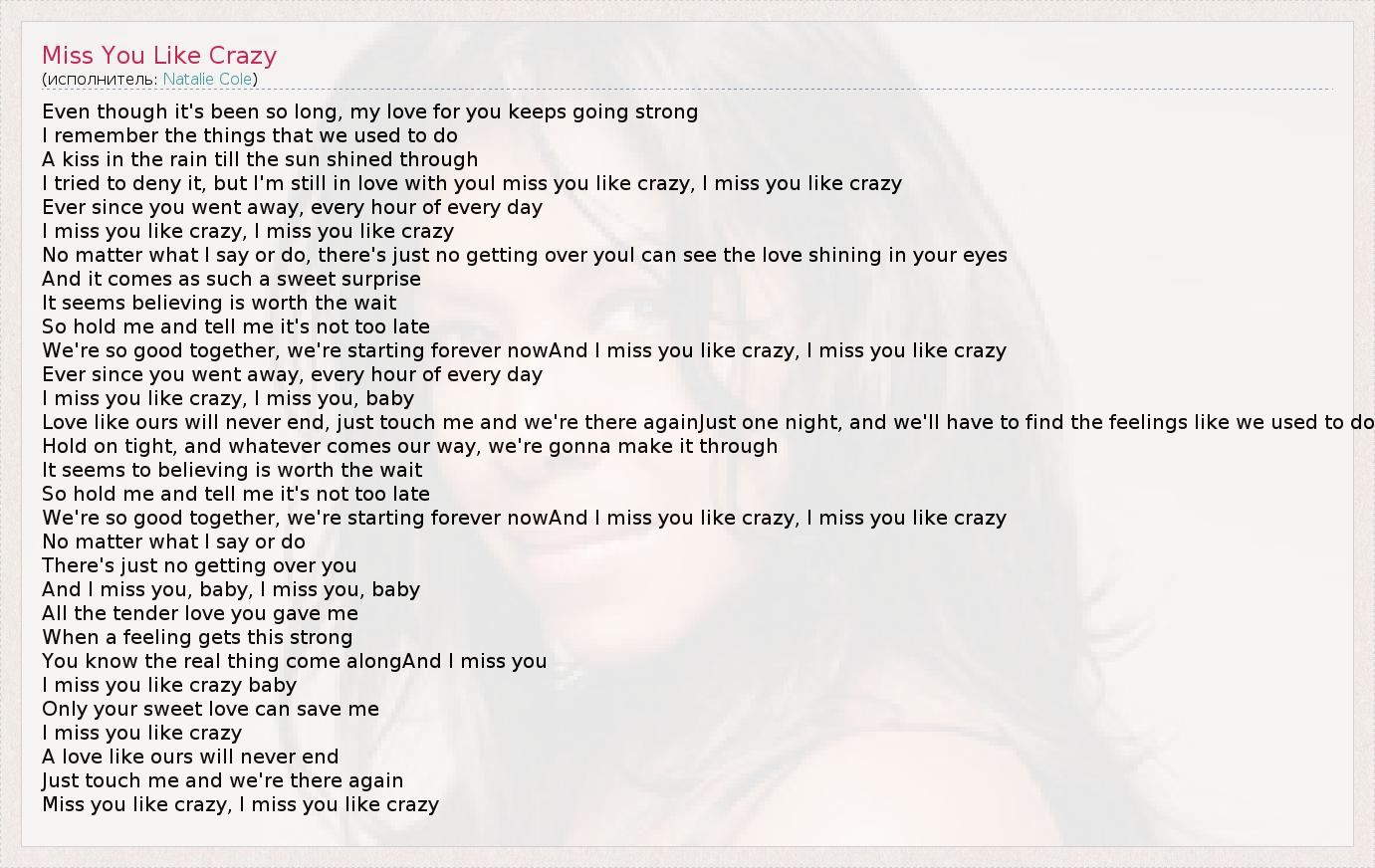 А как ты думаешь, о чем песня "Miss You Like Crazy" ?