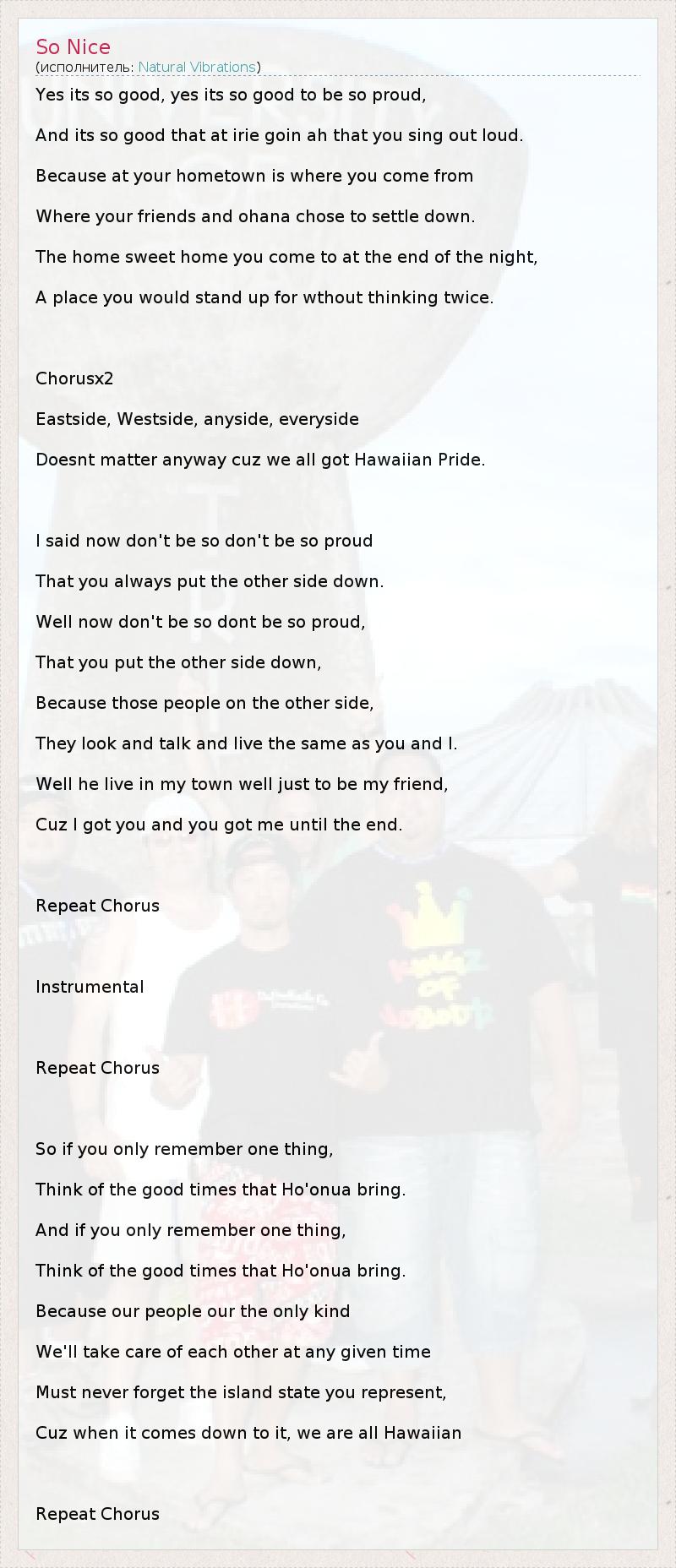 А как ты думаешь, о чем песня "So Nice" ?