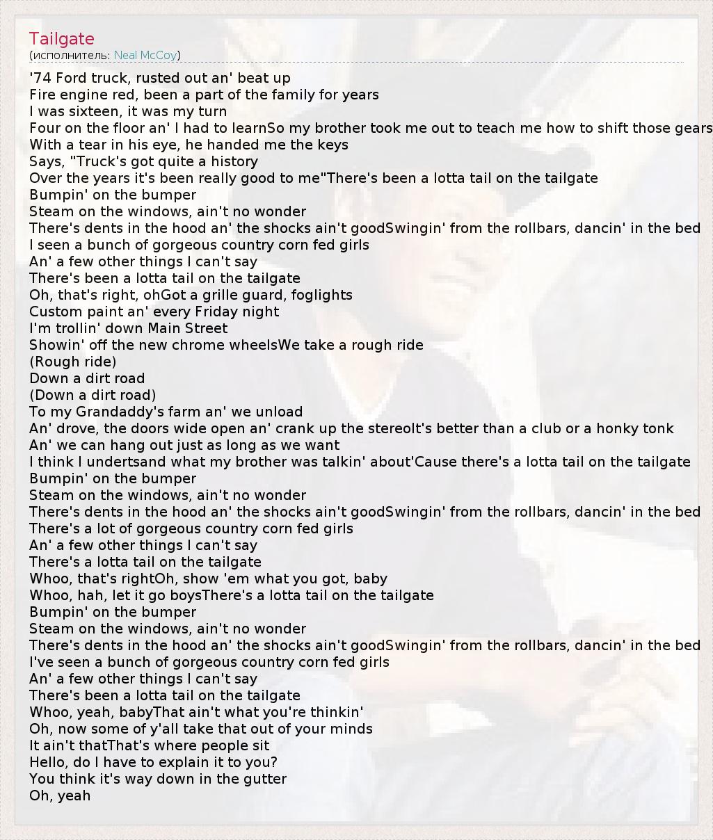 I think I undertsand what my brother was talkin' about'Cause there's a lotta tail on the tailgate