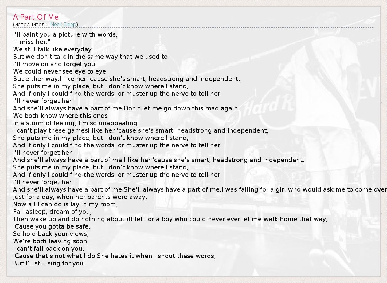 А как ты думаешь, о чем песня "A Part Of Me" ?