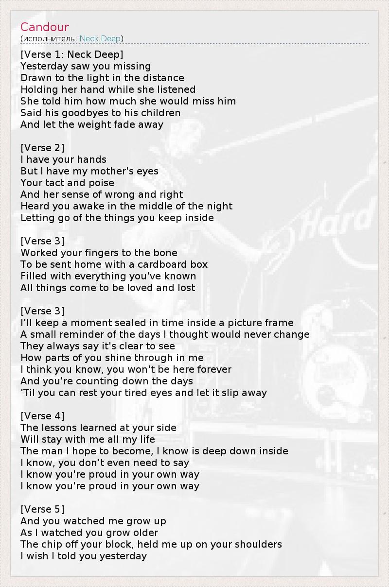 [Verse 1: Neck Deep]