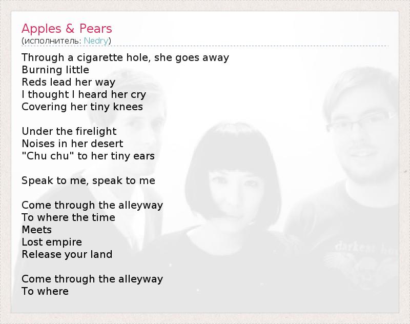 А как ты думаешь, о чем песня "Apples & Pears" ?