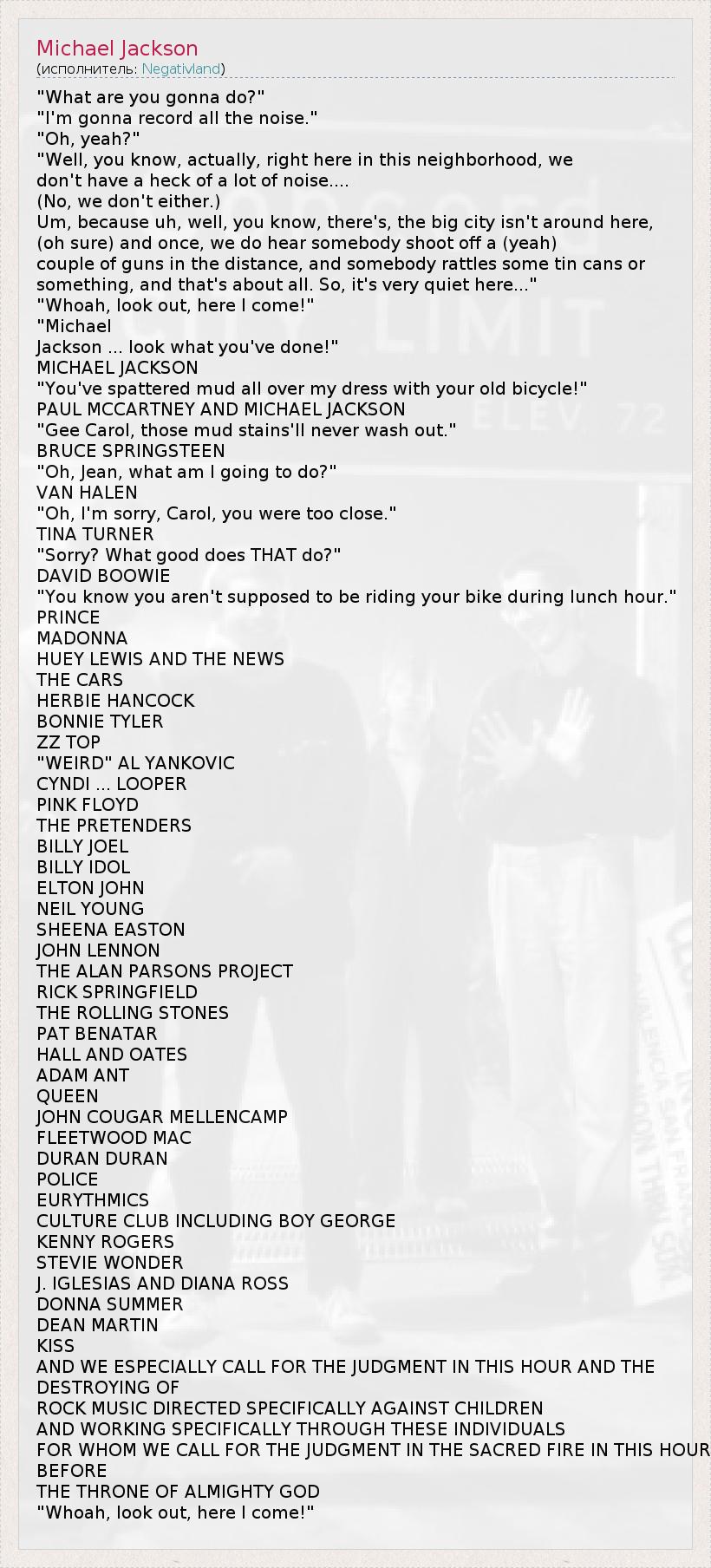 А как ты думаешь, о чем песня "Michael Jackson" ?