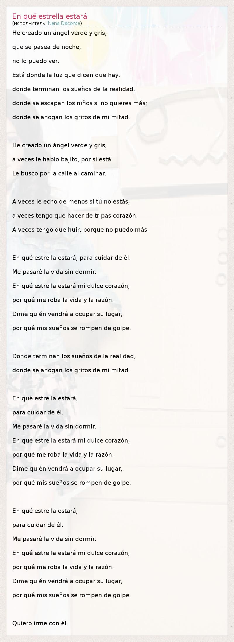 ГлавнаяИсполнителиNena DaconteEn qué estrella estará