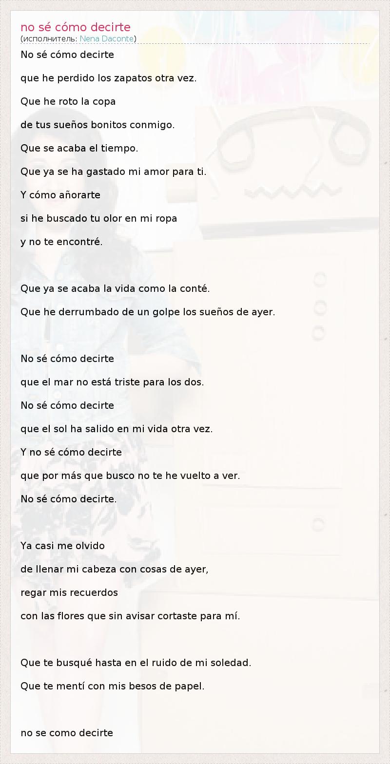 А как ты думаешь, о чем песня "no sé cómo decirte" ?