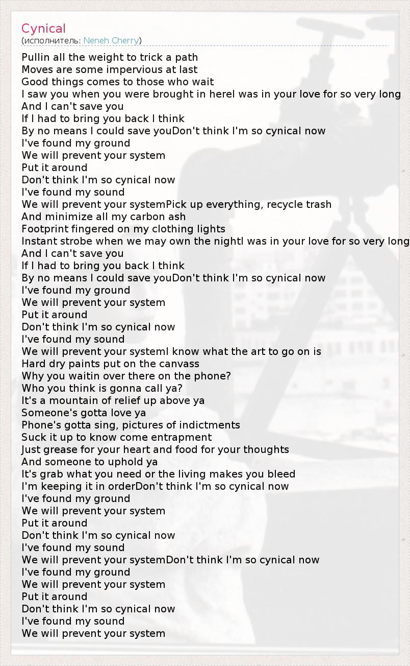 А как ты думаешь, о чем песня "Cynical" ?