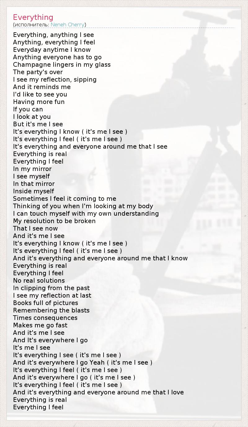 Это интересно:Певица Neneh Cherry (настоящее имя Neneh Mariann Karlsson) родилась 10 марта 1964 года в Стокгольме, Швеция. Является приемной дочерью джазового трубача Дона Черри (Don Cherry). В 1981 году Neneh Cherry становится вокалисткой английской постпанк-группы «Rip, Rig And Panic». В середине восьмидесятых также работала в группах «Slits» и «The The» в качестве бэк-вокалистки. В 1989 году Neneh Cherry записывает серию танцевальных... продолжение