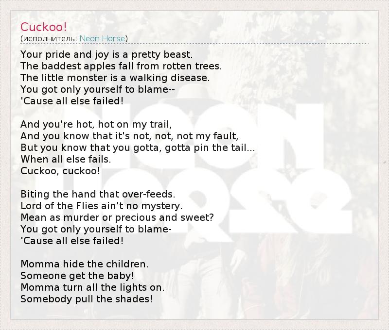 А как ты думаешь, о чем песня "Cuckoo!" ?