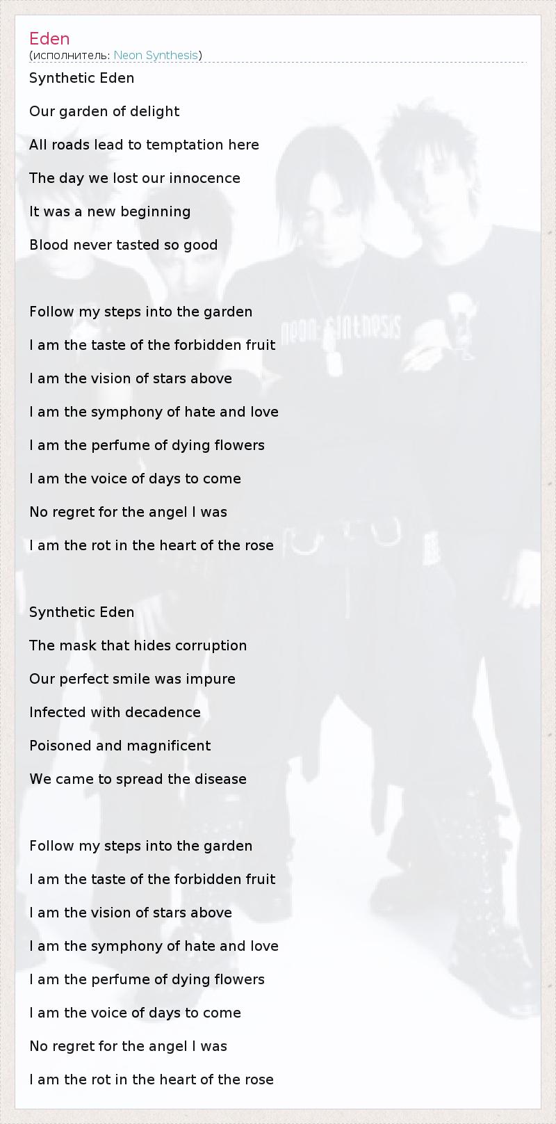Это интересно:Группа NEON SYNTHESIS была образована в 2004 году в Италии и довольно быстро сформировала свой уникальный стиль, корни которого берут начало в металле, а метаморфозы и эксперименты с электроникой привели к созданию сегодняшнего звучания команды, которое может быть определено как сплав из красивых мелодий и агрессивных гитарных ритмов, энергичных танцевальных битов и эпических гимнов, душераздирающих... продолжение