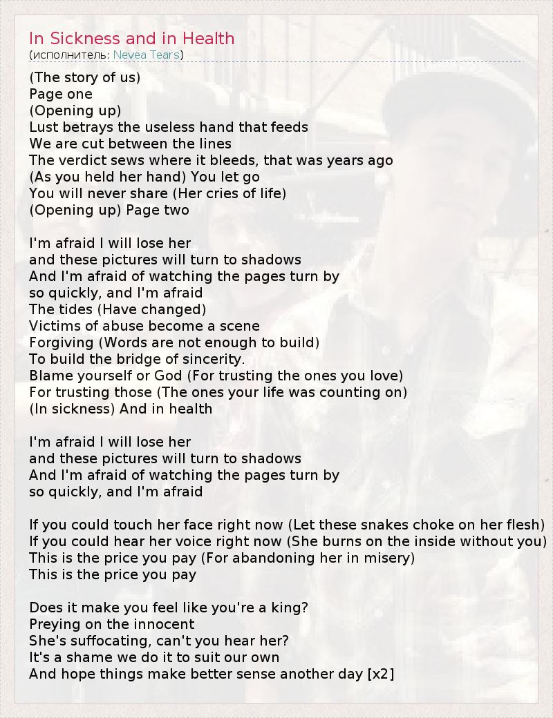 ГлавнаяИсполнителиNevea TearsIn Sickness and in Health