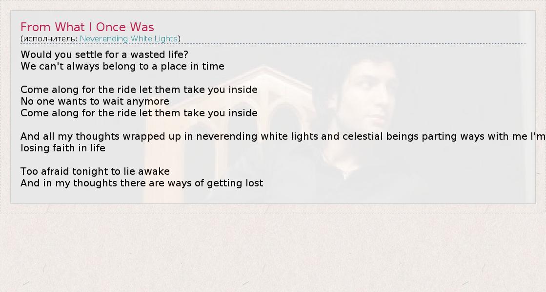 А как ты думаешь, о чем песня "From What I Once Was" ?