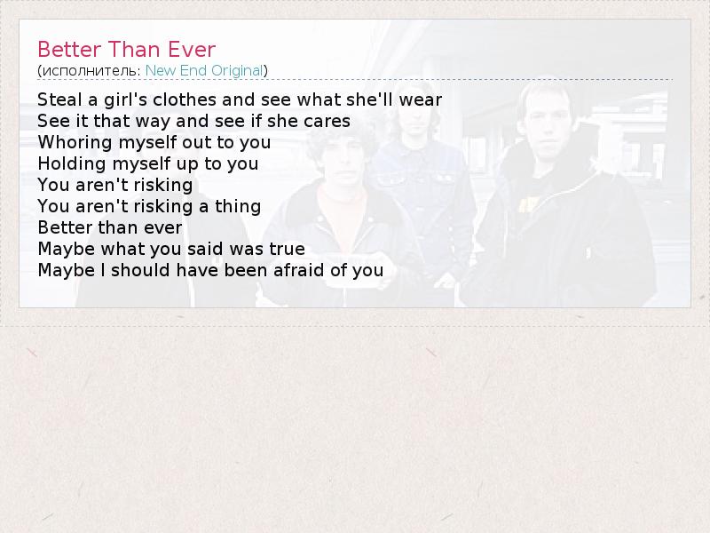 А как ты думаешь, о чем песня "Better Than Ever" ?