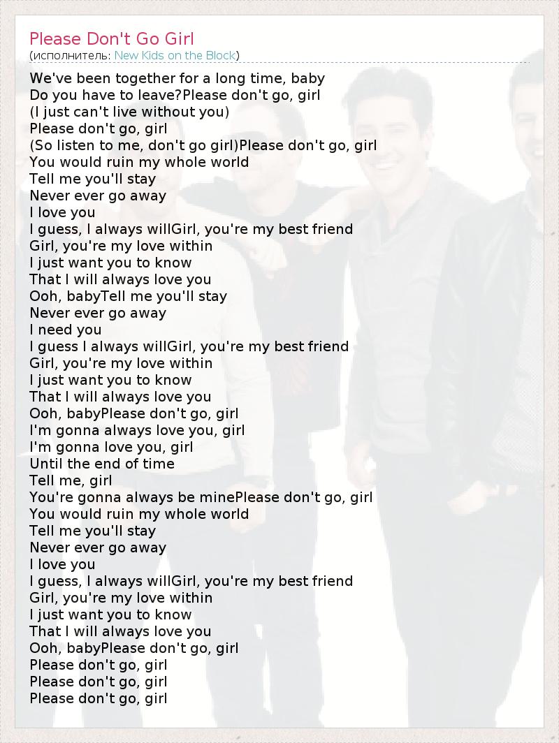 А как ты думаешь, о чем песня "Please Don't Go Girl" ?